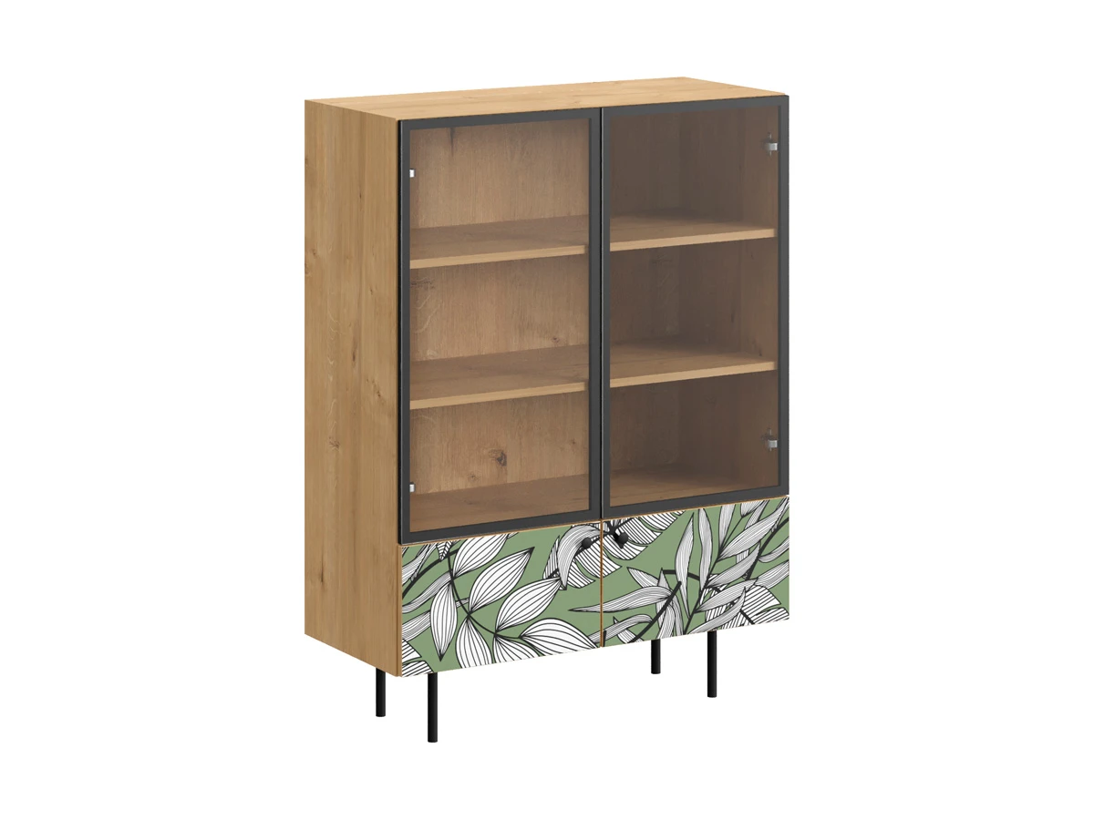 Исполнение: Ножки бук, Корпус - Дуб Канзас коричневый, Фасад - Стекло/Принт Leaf