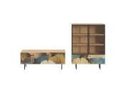 Исполнение: Корпус - Дуб Канзас коричневый, Фасад - Стекло/Принт Botanic, Ножки металлические