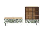 Исполнение: Корпус - Дуб Канзас коричневый, Ножки металлические, Фасад - Стекло/Принт Jungle