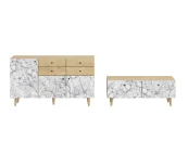 Корпусная мебель, с которой можно составить множество решений для гостиной, детской, кухни, спальни, прихожей, рабочей зоны. Комоды, шкафы, тумбы, столы, витрины, полки, серванты характеризуются универсальностью, многозадачностью, надёжными устойчивыми конструкциями. Имеют выразительный внешний вид, вдохновленный направлением ретро. Смотрятся легко и воздушно за счет деревянных ножек, минимального количества декоративных элементов, спокойных природных оттенков.