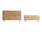 Корпусная мебель, с которой можно составить множество решений для гостиной, детской, кухни, спальни, прихожей, рабочей зоны. Комоды, шкафы, тумбы, столы, витрины, полки, серванты характеризуются универсальностью, многозадачностью, надёжными устойчивыми конструкциями. Имеют выразительный внешний вид, вдохновленный направлением ретро. Смотрятся легко и воздушно за счет деревянных ножек, минимального количества декоративных элементов, спокойных природных оттенков.