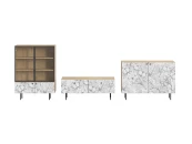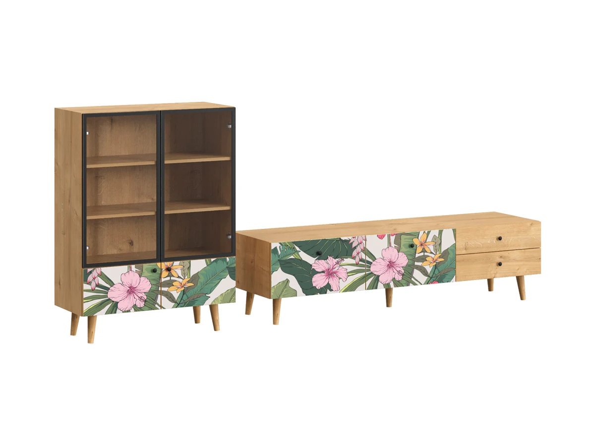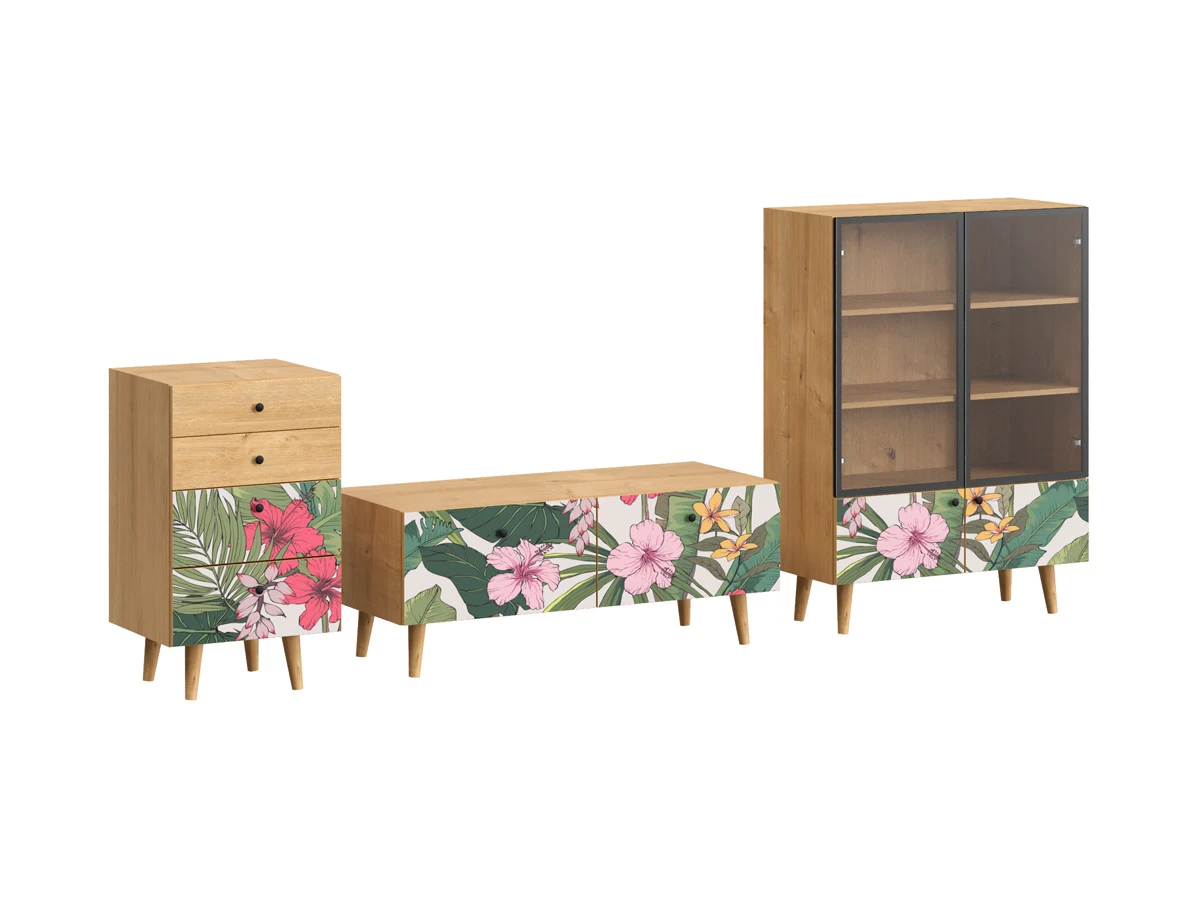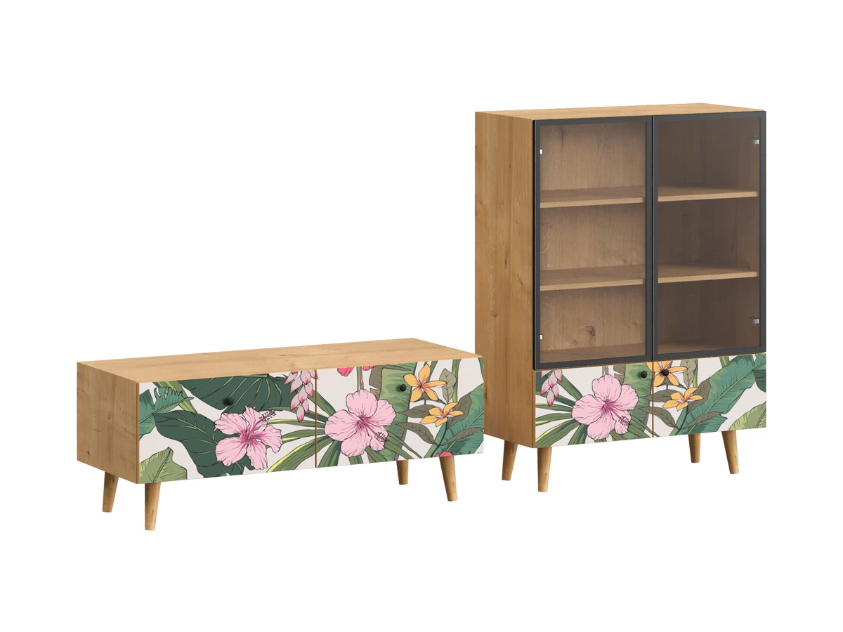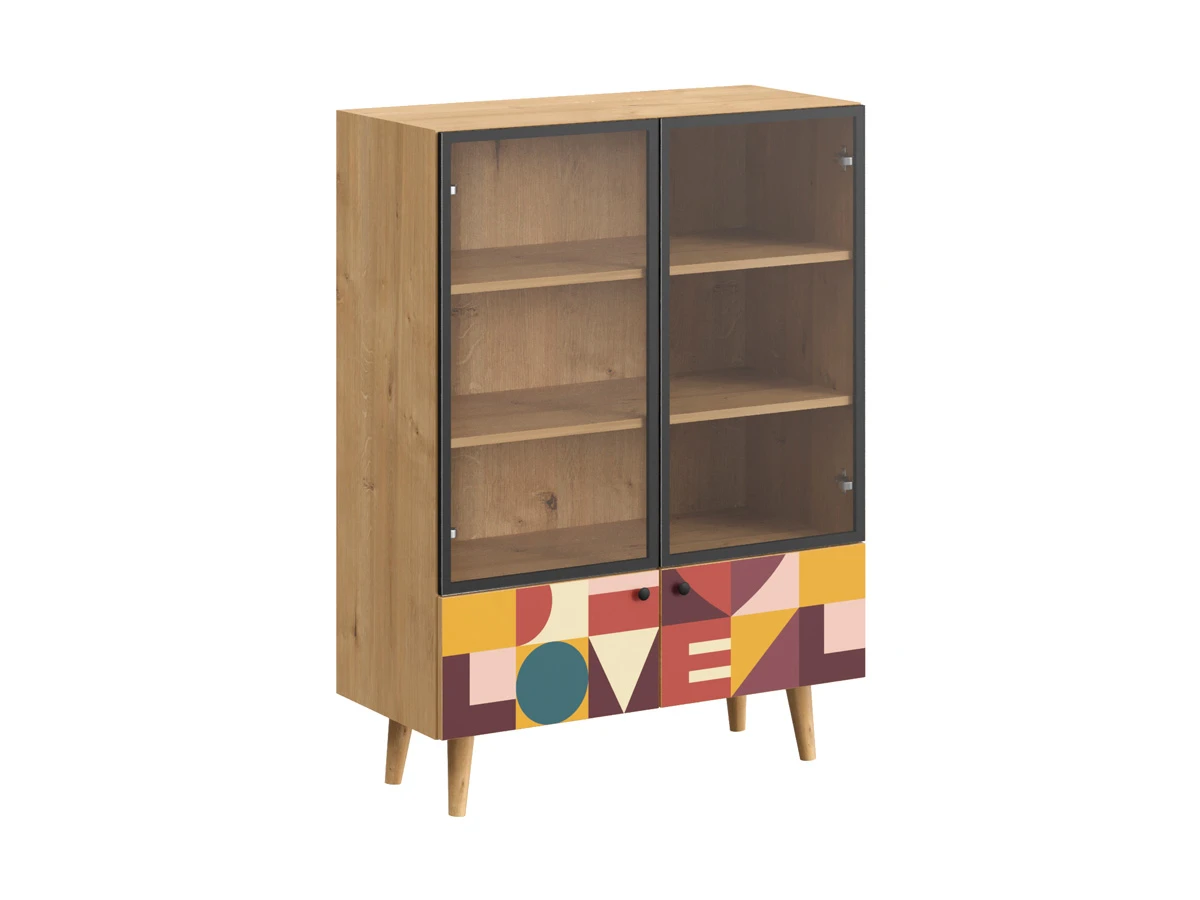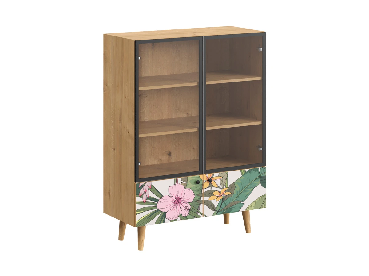 Исполнение: Корпус - Дуб Канзас коричневый, Ножки металлические, Фасад - Стекло/Принт Cotton
