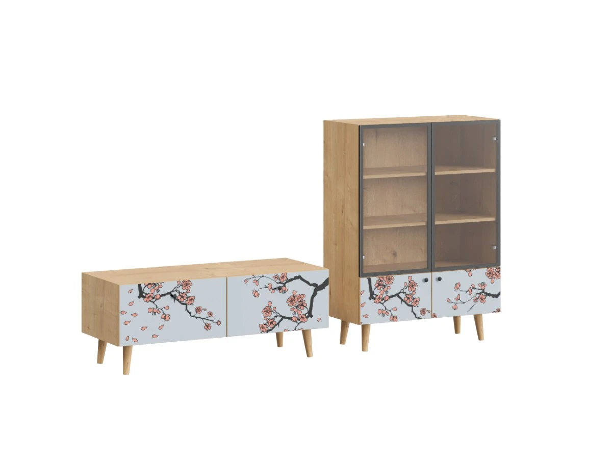 Исполнение: Корпус - Дуб Канзас коричневый, Ножки металлические, Фасад - Стекло/Принт Botanic