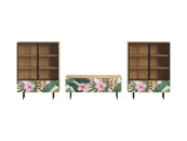 Исполнение: Корпус - Дуб Канзас коричневый, Ножки металлические, Фасад - Стекло/Принт Tropics