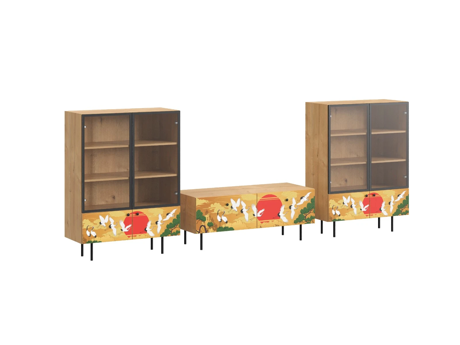 Исполнение: Ножки бук, Фасад - Принт Sunrise, Корпус - Дуб Канзас коричневый