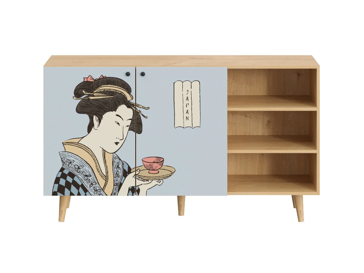 Исполнение: Фасад - Принт Botanic, Корпус - Дуб Канзас коричневый, Ножки металлические