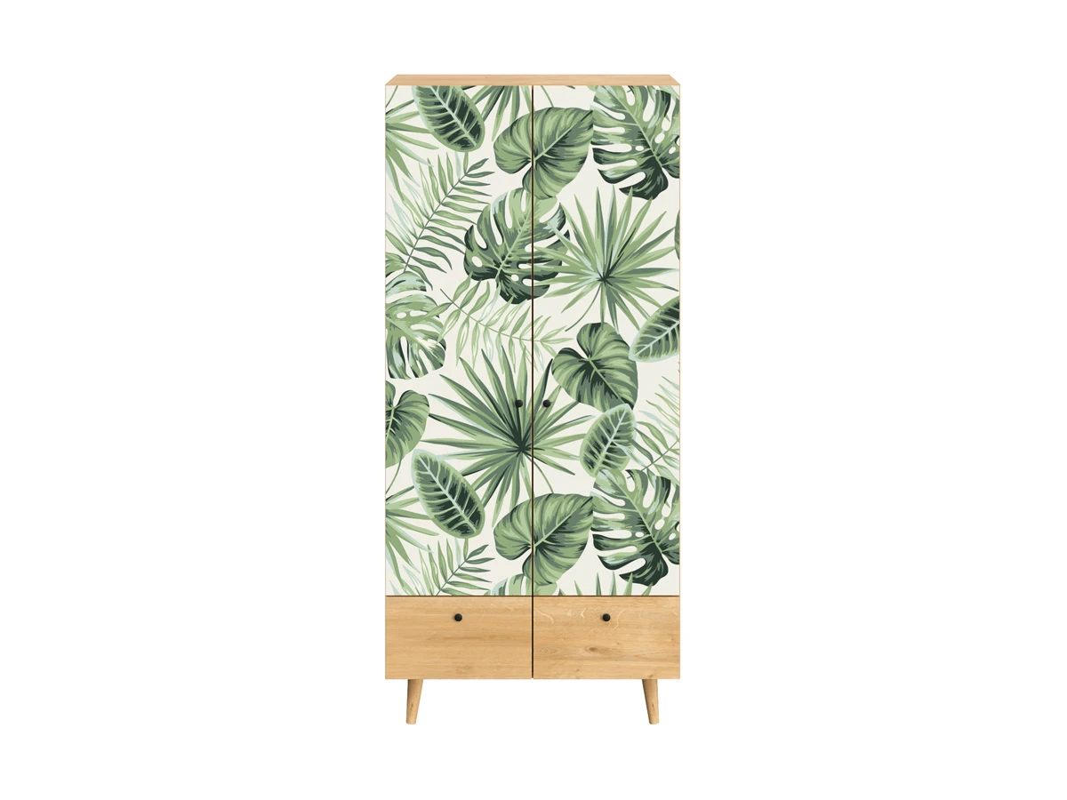 Исполнение: Фасад - принт Monstera/Дуб Канзас коричневый, Корпус - Дуб Канзас коричневый, Ножки металлические