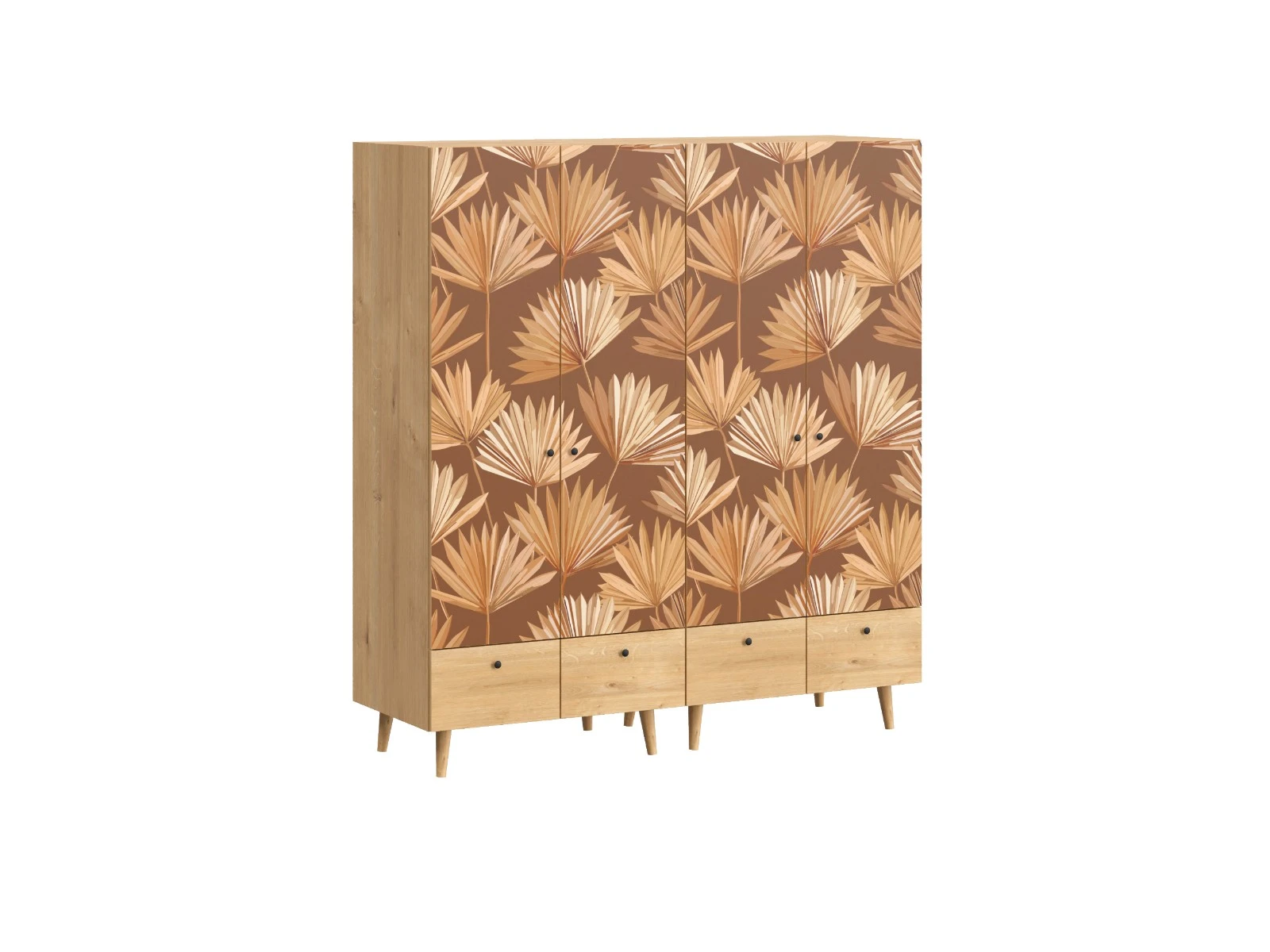 Исполнение: Фасад - принт Palm/Дуб Канзас коричневый, Корпус - Дуб Канзас коричневый, Ножки металлические