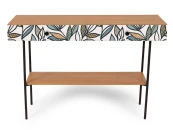 В столе два ящика на скрытых направляющих. В нижней части основания установлена полка.