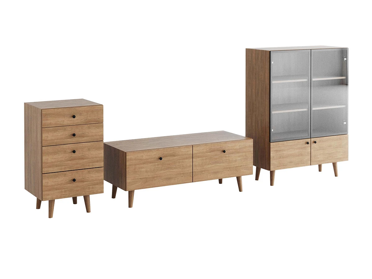Корпусная мебель, с которой можно составить множество решений для гостиной, детской, кухни, спальни, прихожей, рабочей зоны. Комоды, шкафы, тумбы, столы, витрины, полки, серванты характеризуются универсальностью, многозадачностью, надёжными устойчивыми конструкциями. Имеют выразительный внешний вид, вдохновленный направлением ретро. Смотрятся легко и воздушно за счет деревянных ножек, минимального количества декоративных элементов, спокойных природных оттенков.