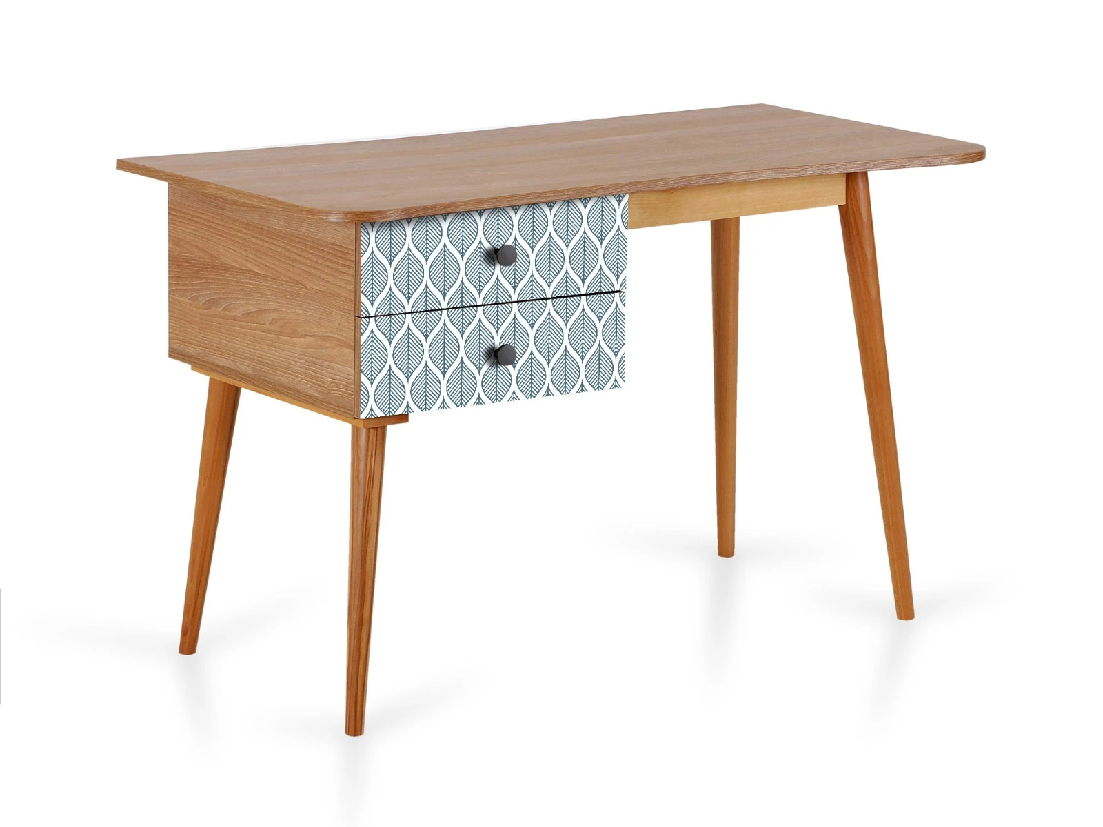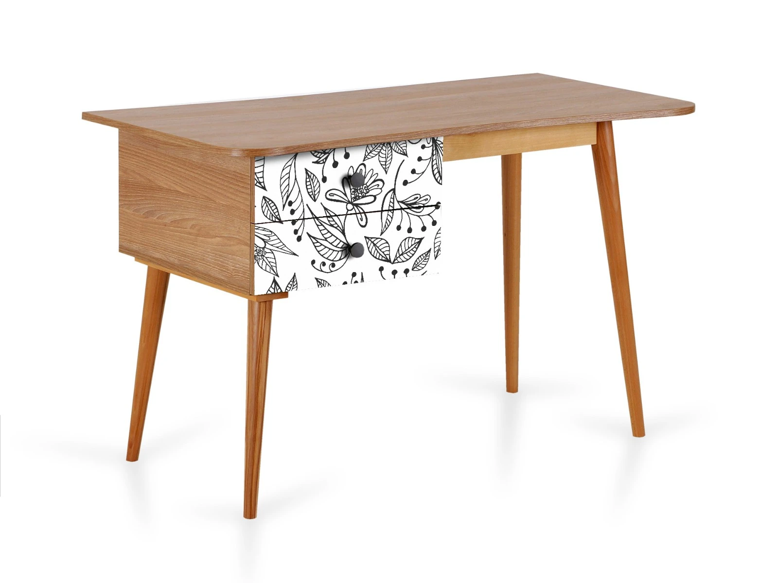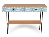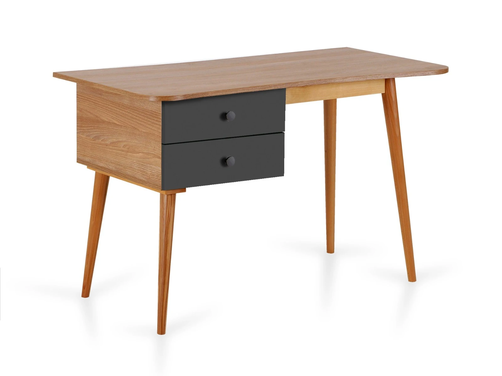 В столе два ящика на скрытых направляющих. В нижней части основания установлена полка.