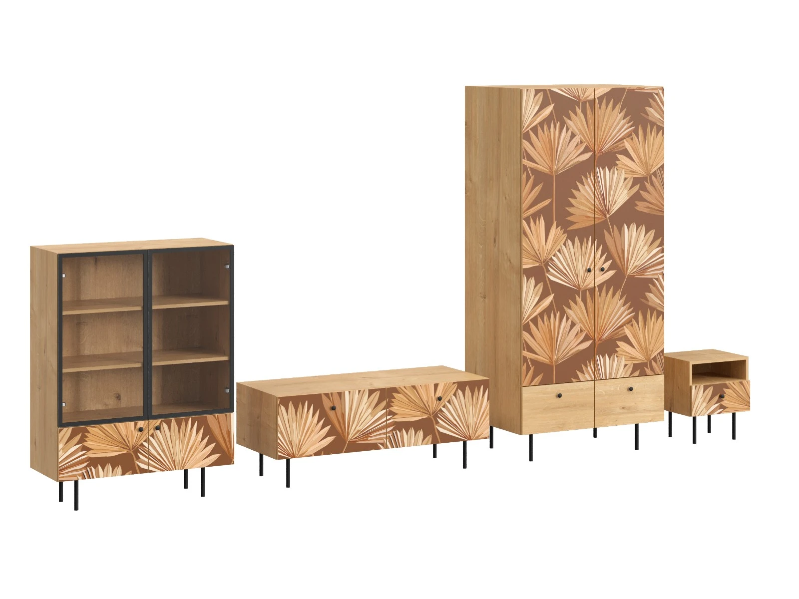 Исполнение: Ножки бук, Фасад - Принт Palm, Корпус - Дуб Канзас коричневый