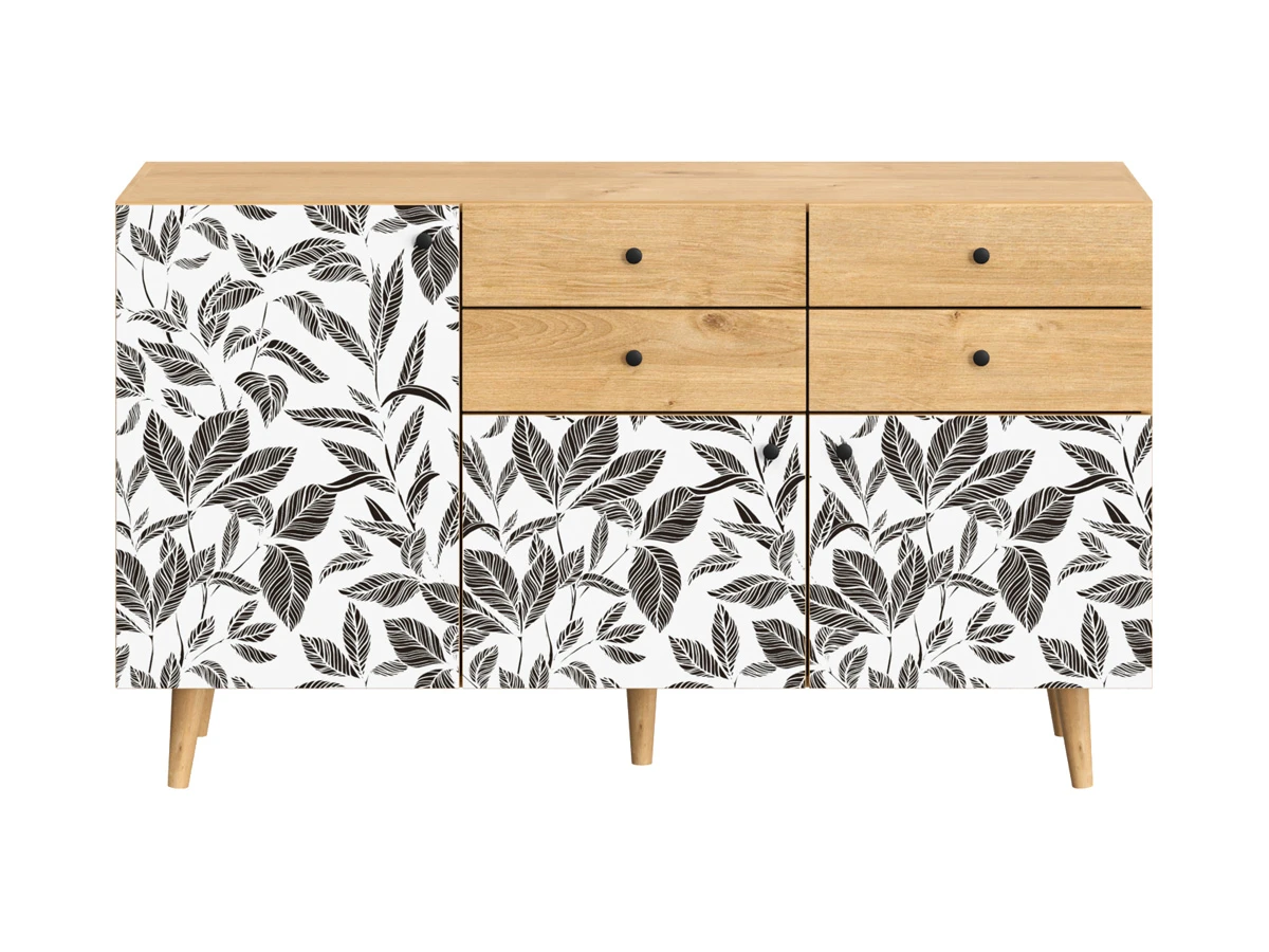 Исполнение: Фасад - Принт Flower, Корпус - Дуб Канзас коричневый, Ножки металлические