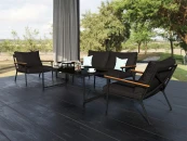 Лаунж зона Festa материал всесезонный алюминий, ткань для улицы, закаленное стекло, тик Размеры: диван двухместный, 140 * 86 * 86, 1 шт, кресло, 70 * 86 * 86, 2 шт, кофейный столик, 120 * 60 * 42, 1 шт, журнальный столик, 50 * 50 * 42, 1 шт. Кол-во товаров - 5.
