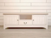 Консоль Olivia непременно привнесет в Ваше пространство атмосферу невероятного домашнего тепла и уюта. Он выполнен в стиле кантри, который, как известно, символизирует натуральность материалов, уютную простоту и удобство. Консоль Olivia изготавливается вручную из массива березы, столешница из массива ясеня. Некоторые вкладки и ящик из березовой фанеры. Фурнитура - латунь. Изделие покрывается итальянскими лакокрасочными материалами Sayerlack. Выбор в пользу консоли под TV Olivia - правильное решение. Ее ящик и отделения за дверцами достаточно вместительные, а посередине Вы сможете разместить необходимую аппаратуру, отверстие под вывод шнуров делается по запросу. Приятный пастельный цвет, фрезеровка на дверках, кованые ручки и фактурная ясеневая столешница придадут интерьеру еще немного шарма.