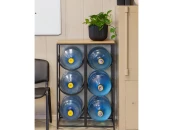 В подставке для бутылок горизонтально размещаются шесть стандартных бутылей по 19 л. Верхнюю часть подставки можно использовать как деревянный столик для установки кулера, тем самым используя пространство максимально функционально и удобно!