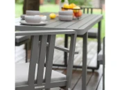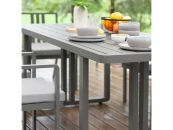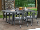 Разборный обеденный стол AMALFI отличается современным дизайном подстолья и функциональной металлической столешницей. Алюминиевый каркас с полимерным покрытием в оттенке Lava обеспечивает прочность и устойчивость к внешним воздействиям. Регулируемые ножки позволяют устанавливать мебель на любой поверхности.