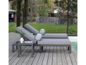 Садовый шезлонг оснащен 2 подушками темно-серого цвета и подушкой-валиком под голову c геометрическим рисунком. В подушках в качестве наполнителя используется поролон повышенной плотности, размеры верхней подушки 78х70х10 см, нижней - 105х70х10 см, валик под голову, размеры 60х18 см.