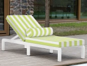 Уличный шезлонг оснащен 2 большими подушками и мягким валиком под голову. Съемные чехлы выполнены из водоотталкивающей ткани, 100% олефин.