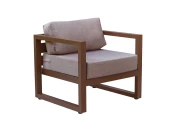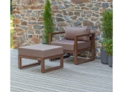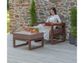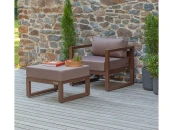 Комплект уличной мебели CAPRI создает комфортное пространство для отдыха в саду, на террасе, у бассейна. В наборе представлены кресло и пуф. Каркас изготовлен из высокопрочного алюминия, на сиденьях предусмотрены удобные подушки коричневого оттенка.
