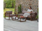 В наборе садовой мебели CAPRI представлены диван, кресло и журнальный столик. Каркас мебели выполнен из высокопрочного алюминия, на сиденьях предусмотрены удобные подушки коричневого оттенка. Стильный уличный комплект подойдет для размещения 3-х человек. Алюминиевая мебель отличается долгим сроком службы, подходит для сада, террасы, бассейна. Комплект мебели органично впишется в интерьер загородного дома, клуба, ресторана, отеля. Набор доставляем в собранном виде в надежной упаковке.