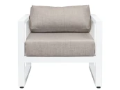 Уличное кресло CAPRI в комплекте с диваном, пуфом и журнальным столиком создадут комфортную зону для отдыха и приема гостей в загородном доме, клубе, отеле и ресторане.