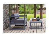 Комплект уличной мебели CAPRI создает комфортное пространство для отдыха в саду, на террасе, у бассейна. В наборе представлены диван и журнальный столик. Каркас мебели выполнен из высокопрочного алюминия, на сиденьях предусмотрены удобные подушки темно-серого оттенка.