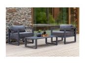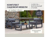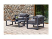 Комплект уличной мебели CAPRI создает комфортное пространство для отдыха в саду, на террасе, у бассейна. В наборе представлены 2 кресла и журнальный столик. Каркас изготовлен из высокопрочного алюминия, на сиденьях предусмотрены удобные подушки темно-серого оттенка.