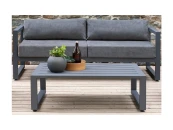 Комплект уличной мебели CAPRI создает комфортное пространство для отдыха в саду, на террасе, у бассейна. В наборе представлены диван, пуф и журнальный столик. Каркас мебели выполнен из высокопрочного алюминия, на сиденьях предусмотрены удобные подушки темно-серого оттенка.
