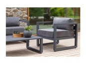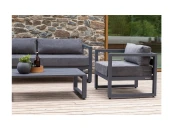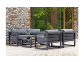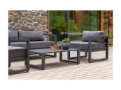 Комплект уличной мебели CAPRI создает комфортное пространство для отдыха в саду, на террасе, у бассейна. В наборе представлены диван, два кресла, и журнальный столик. Каркас мебели выполнен из высокопрочного алюминия, на сиденьях предусмотрены удобные подушки темно-серого оттенка.