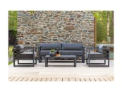 В наборе садовой мебели CAPRI представлены диван, 2 кресла и журнальный столик. Каркас мебели выполнен из высокопрочного алюминия, на сиденьях предусмотрены удобные подушки темно-серого оттенка. Стильный уличный комплект подойдет для размещения 5-и человек. Алюминиевая мебель отличается долгим сроком службы, подходит для сада и террасы. Комплект мебели органично впишется в интерьер загородного дома, клуба, ресторана, отеля. Набор доставляем в собранном виде в надежной упаковке.