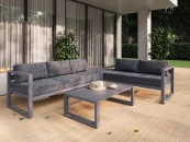 В модульном наборе CAPRI представлены 3 предмета: большой диван с левым подлокотником, средний диван с правым подлокотником, пуф без спинки. Уличный комплект подойдет для размещения 5-и человек.