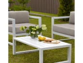 Коллекция садовой мебели CAPRI привлекает внимание современным дизайном и долговечностью. Алюминиевая мебель отличается прочностью и длительным сроком службы, не боится осадков и ультрафиолета. Отсутствие декора позволит вписать набор в интерьер любого стиля. Уличный комплект подойдет для размещения 3-х человек.