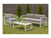 Комплект уличной мебели CAPRI создает комфортное пространство для отдыха в саду, на террасе, у бассейна. В наборе представлен диван, кресло и журнальный столик. Каркас изготовлен из высокопрочного алюминия с полимерным покрытием, на сиденьях предусмотрены удобные подушки пепельно-коричневого оттенка.