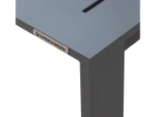 Подстолье и столешница стола изготовлены из алюминиевой профильной трубы с полимерным покрытием оттенка Lava. На ножках предусмотрены пластиковые заглушки для защиты напольного покрытия.