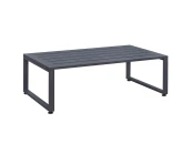 Габариты журнального стола 110х65х36 см. Каркас изготовлен из алюминиевой профильной трубы с полимерным покрытием темно-серого цвета.
