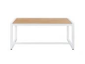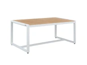 В уличном комплекте SANTORINI представлены большой обеденный стол и 6 удобных стульев. Каркас мебели изготовлен из высокопрочного алюминия с полимерным покрытием белого цвета. Столешница и подлокотники выполнены из массива лиственницы. Для комфортной посадки в комплекте идут мягкие подушки в съемных чехлах.