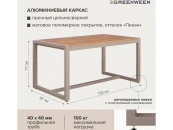 Каркас стола изготовлен из алюминиевой профильной трубы 60х40 мм. Металлическое основание с матовым полимерным покрытием отличается повышенной прочностью, устойчивостью к царапинам. Современное производство Greenween гарантирует надежность и эстетику сварных швов металлической мебели.