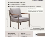 Каркас мебели изготовлен из алюминиевой профильной трубы 40х40 мм. Металлическое основание с матовым полимерным покрытием отличается повышенной прочностью, устойчивостью к царапинам. Современное производство Greenween гарантирует надежность и эстетику сварных швов металлической мебели.