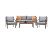 Комплект уличной мебели SANTORINI сочетает в себе элегантный дизайн, комфорт и долговечность. В наборе представлены диван и 2 кресла с подушками, журнальный столик.