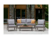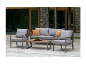 Диван в комплекте с журнальным столиком и креслом создают уютное пространство для отдыха в саду, на террасе, у бассейна.