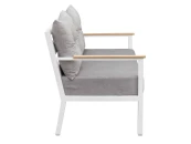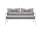 Легкие формы алюминиевого каркаса, устойчивого к любым погодным условиям, отлично дополняются деревянными подлокотниками, покрытыми маслом, что гарантирует их долговечность при эксплуатации на улице. Регулируемые по высоте ножки обеспечат комфортное размещение дивана даже на неидеально ровной поверхности.
