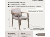 Садовый стул SANTORINI выполнен из высокопрочного алюминия теплого оттенка пекан. Легкий каркас дополняют подлокотники из лиственницы, для комфортной посадки в комплекте идут мягкие подушки в съемных чехлах из мебельной рогожки. Размеры стула: 540x650x750 мм.