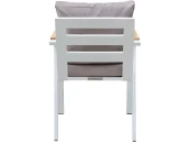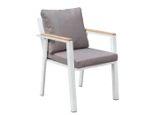 Садовый стул SANTORINI выполнен из высокопрочного алюминия белого цвета. Легкий каркас дополняют подлокотники из лиственницы, для комфортной посадки в комплекте идут мягкие подушки в съемных чехлах из мебельной рогожки пепельно-коричневого оттенка. Размеры стула: 54x65x75 см.