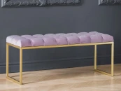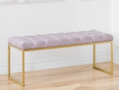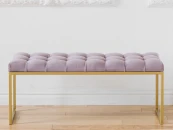 Банкетка ALBA с золотым основанием из стали и велюровой подушкой с каретной стяжкой.