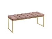 Банкетка ALBA с золотым основанием из стали и мягкой велюровой подушкой с каретной стяжкой.