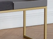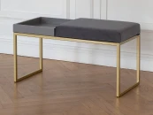 Банкетка ALBA BOX с золотым основанием, мягким сиденьем и ящиком для аксессуаров. Размеры: 850 х 400 х 450 мм. Стальной каркас изготовлен из профильной трубы 20х20 мм. Открытая полка выполнена из МДФ, покрыта цветной эмалью, мягкое сиденье - из искусственного велюра. Банкетка с полочкой подойдет для прихожей, кухни, гостиной и кабинета. Удобно использовать в качестве прикроватной банкетки в спальне. Банкетку-скамью можно разместить в офисе, зале, салоне, фотостудии, гостинице, баре, клубе, кафе и ресторане. Доставляем банкетку в собранном виде в надежной упаковке.