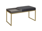 Банкетка ALBA BOX с золотым основанием, мягким сиденьем и ящиком для аксессуаров. Размеры: 850 х 400 х 450 мм. Стальной каркас изготовлен из профильной трубы 20х20 мм. Открытая полка выполнена из МДФ, покрыта цветной эмалью, мягкое сиденье - из искусственного велюра. Банкетка с полочкой подойдет для прихожей, кухни, гостиной и кабинета. Удобно использовать в качестве прикроватной банкетки в спальне. Банкетку-скамью можно разместить в офисе, зале, салоне, фотостудии, гостинице, баре, клубе, кафе и ресторане. Доставляем банкетку в собранном виде в надежной упаковке.