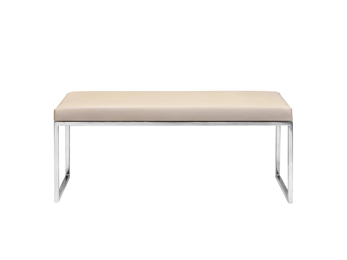 Эффектное сочетание экокожи и металла понравится всем ценителям стильной и надежной мебели. Качественные материалы позволят надолго сохранить первоначальный внешний вид банкетки.