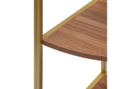 Золотой металлический стеллаж ALLEN с полками из ЛДСП привлекает внимание элегантным дизайном и функциональностью. Отлично смотрится как предмет интерьера и может использоваться в оборудования для выставок. Подойдет для хранения книг, игрушек, декора, фотографий или размещения растений. Стальной каркас изготовлен из профильной трубы 15х15.